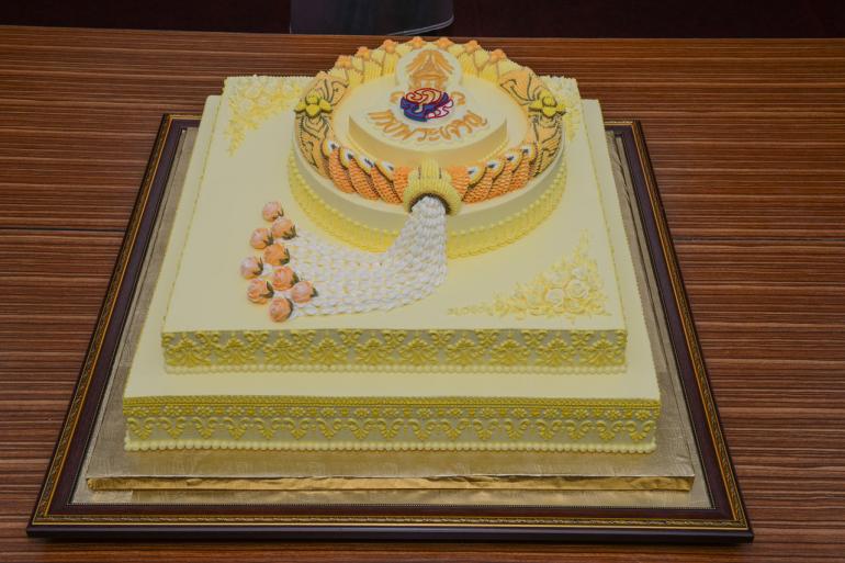 กิจกรรมสำหรับปีนี้ ขอนำภาพขนมเค้กที่คุณภัทรา ศิลาอ่อน ประธานกรรมการ บริษัทเอสแอนด์พี ซินดิเคท จำกัด (มหาชน) ทูลเกล้าฯ ถวายพระบาทสมเด็จพระเจ้าอยู่หัว มาให้ชมกัน
